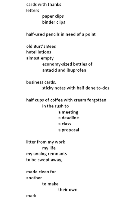 June 30, 2012 Detritus by Laura Gayle Green Share this: Click to email a link to a friend (Opens in new window) Email Click to share on X (Opens in new window) X Click to share on Facebook (Opens in new window) Facebook Click to share on Tumblr (Opens in new window) Tumblr Like Loading... Categories: Poetry