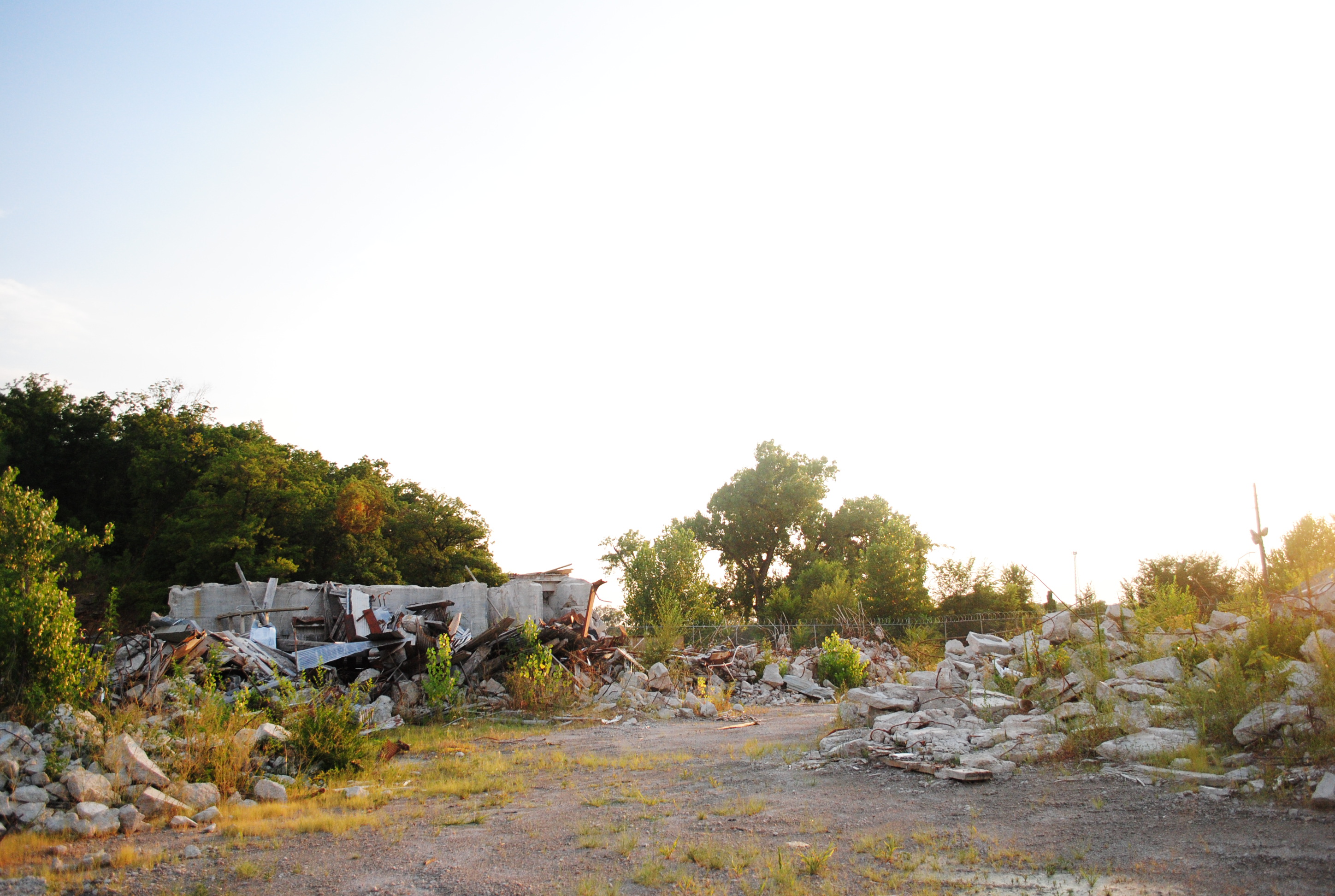 On the outskirts of Kansas City, Missouri, nature grows over a demolished house and the surrounding area