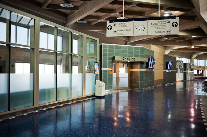 Upon entering terminal A via the underground parking garage, the first thing we noticed was that it smelled like crab rangoon — odd considering there are no Chinese restaurants in the building. Smooth jazz played overhead, and the first three rows of benches we saw were completely empty. It felt more like an abandoned shopping mall than an operational airport. “This place is dead,” Jeff said.