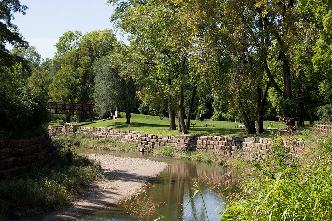 Still, cruising Southwest down Merriam Lane/Drive can be depressing. The Streamway path itself is a blatant representation of contrasting views of society. Turn one direction and you’ll see views of idyllic parks, benches, creeks, playgrounds, farmers’ markets. Glance the other direction and you’ll see used-car dealerships, shady Clark’s Motel, and the Go Chicken Go corporate offices.
